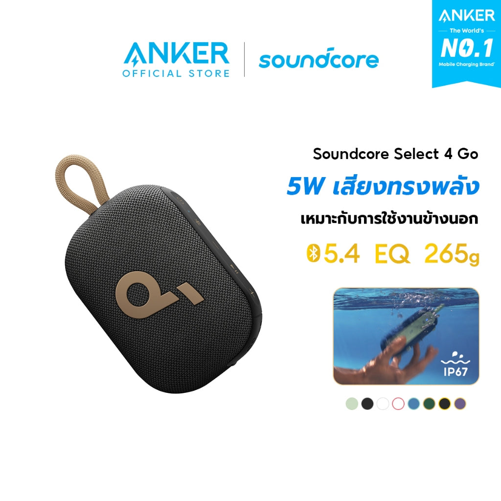 💎Soundcore Select 4 Go Bluetooth Speaker💎 ✨เวลาเล่นเพลงต่อเนื่องนานถึง 20 ชั่วโมง: เพลิดเพลินกับเพลงต่อเนื่องนานถึง 20 ชั่วโมงด้วยการชาร์จเพียงครั้งเดียว เหมาะสำหรับการผจญภัยกลางแจ้งที่ยาวนานและการปาร์ตี้ตลอดทั้งวัน ✨5W เสียงที่ทรงพลังอย่างน่าประหลาดใจ: แม้จะมีขนาดกะทัดรัด แต่ลำโพงบลูทูธนี้ให้เสียงที่ทรงพลังและหนักแน่นด้วยเอาต์พุต 5W ช่วยให้มั่นใจได้ถึงประสิทธิภาพเสียงที่ชัดเจนและไดนามิค ✨การป้องกัน IP67 เต็มรูปแบบและการลอยน้ำ: ได้รับการจัดอันดับ IP67 สำหรับการป้องกันฝุ่นและน้ำอย่างสมบูรณ์ ลำโพงกลางแจ้งนี้ได้รับการออกแบบมาให้ทนทานต่อสภาพกลางแจ้งที่รุนแรงและสามารถลอยน้ำได้...