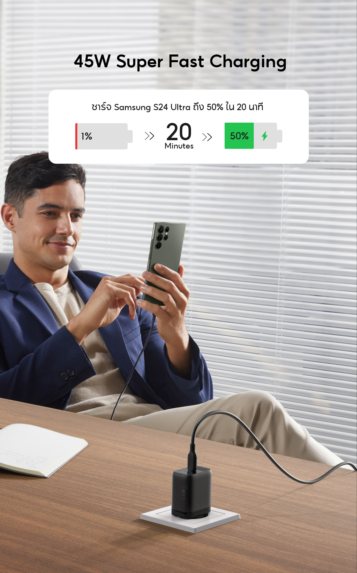 ออกแบบเฉพาะสำหรับ Samsung รองรับการชาร์จเร็ว 25W ปลั๊กพับเก็บได้ พกพาสะดวก