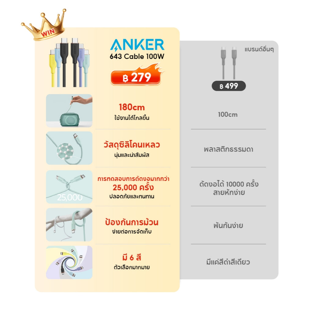 มาพร้อมกับซิลิโคนสำหรับม้วนเก็บสายให้ตามปกติ