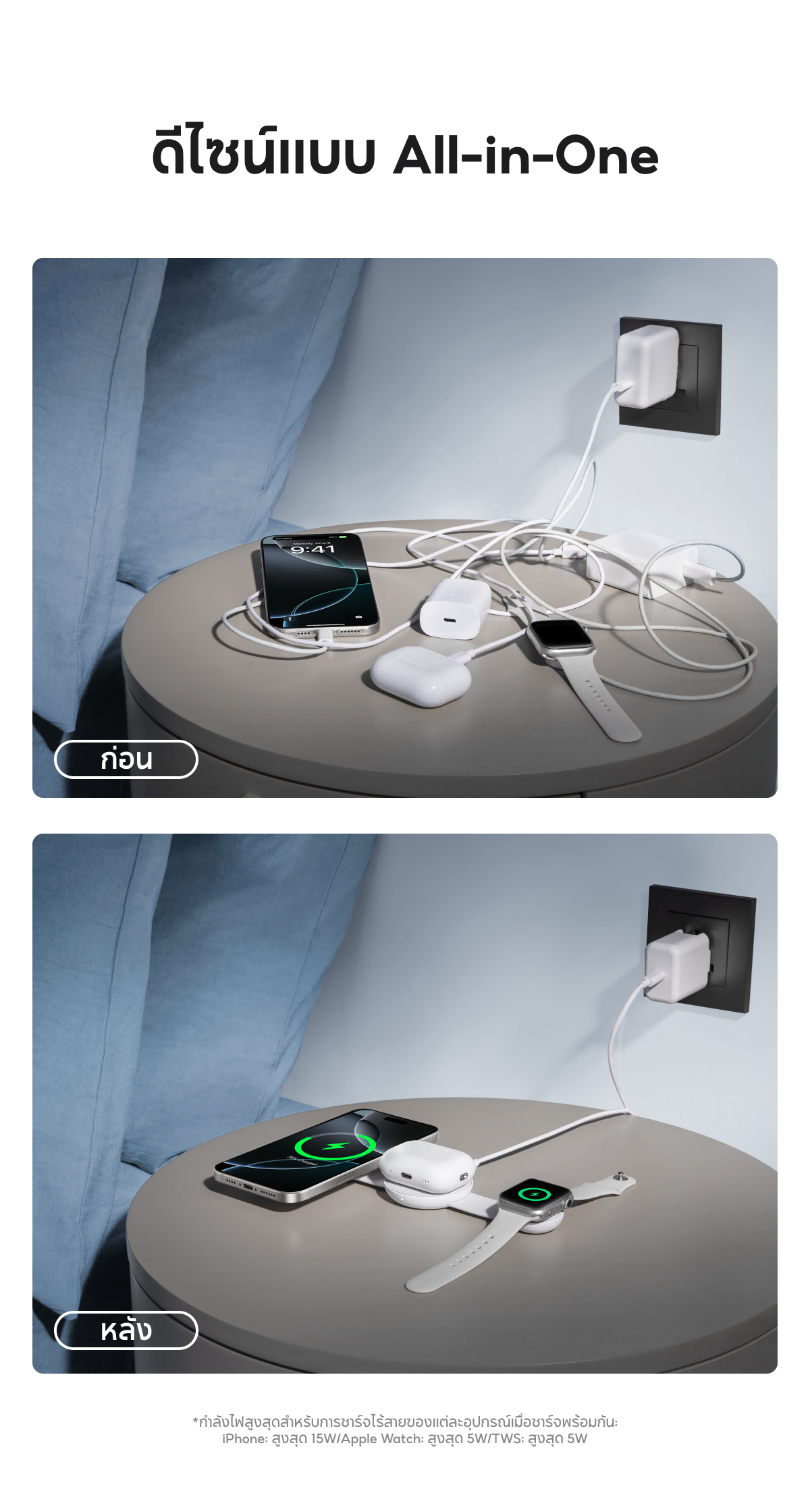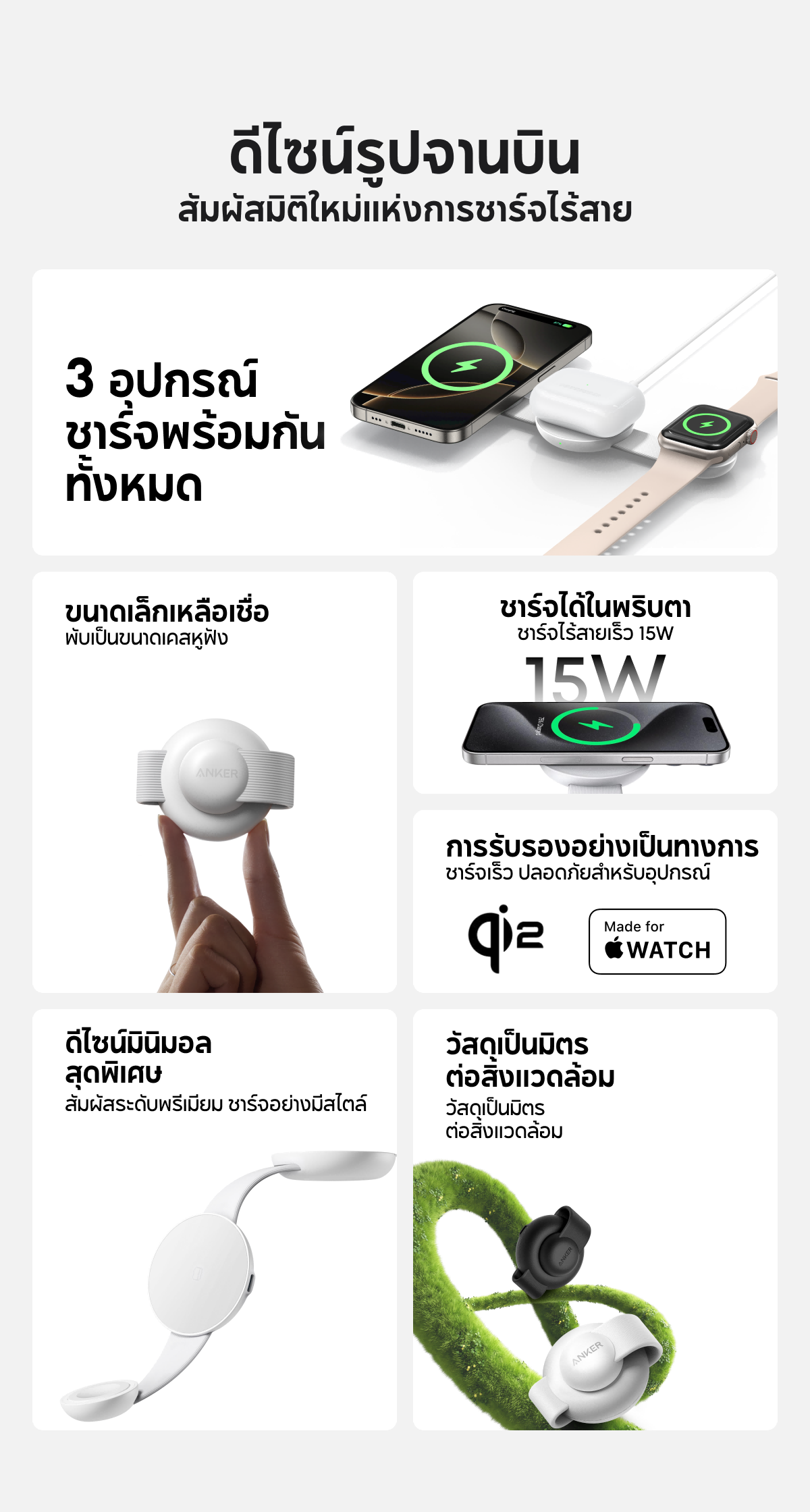 - เครื่องชาร์จ Qi2 3-in-1 ขนาดกะทัดรัดพิเศษ