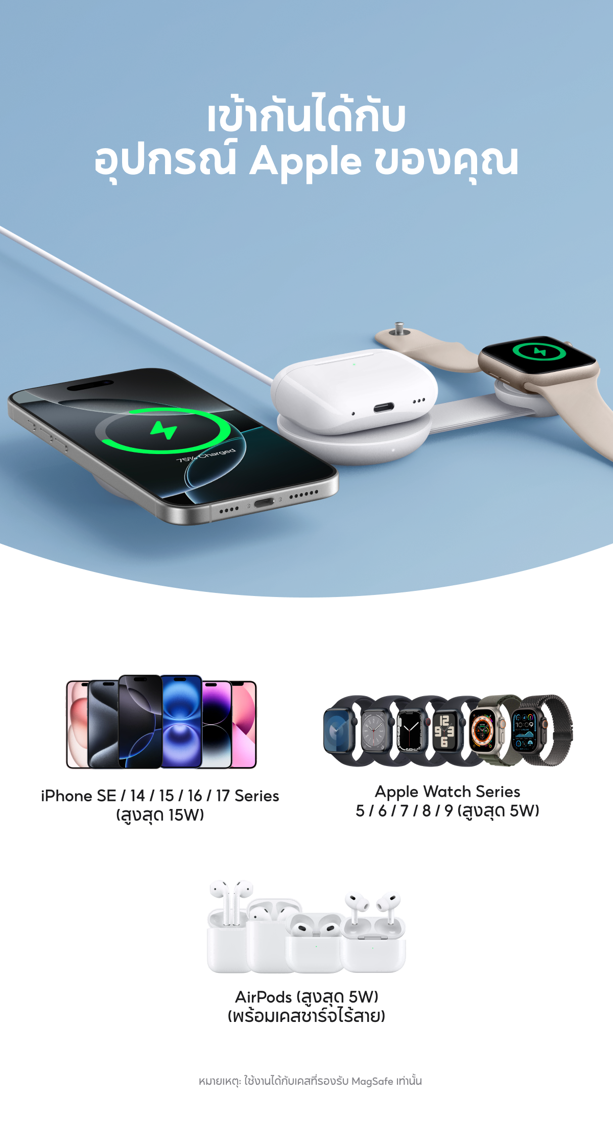 - Apple Watch Series 11 / 10 / 9 / 8 / 7 / Ultra / SE (ชาร์จเร็ว)