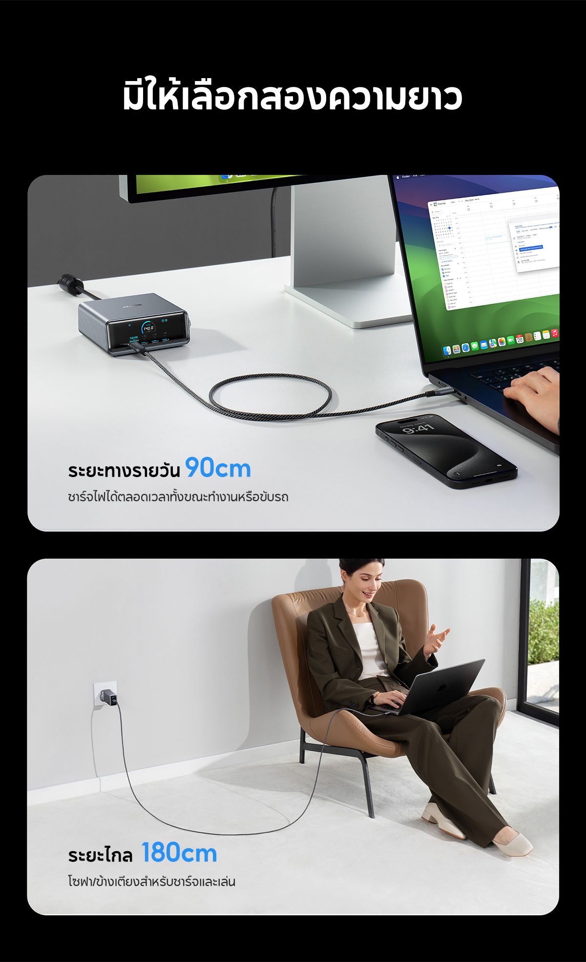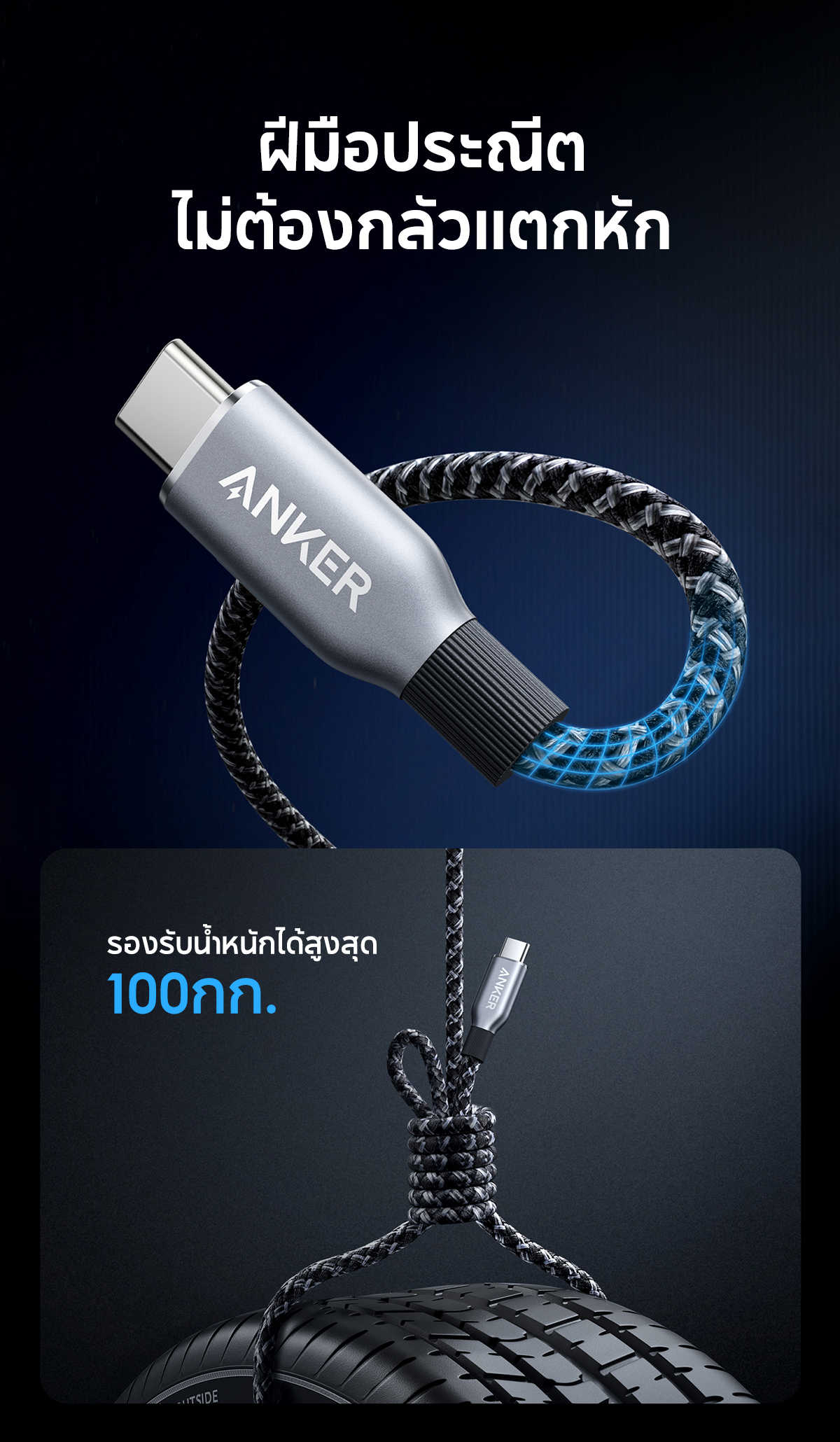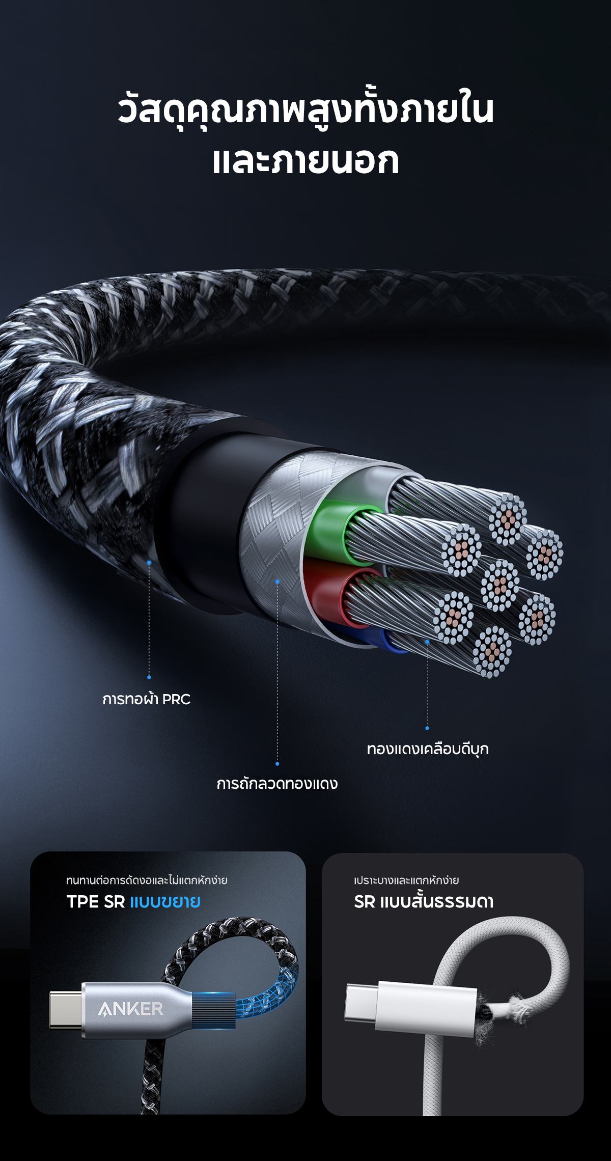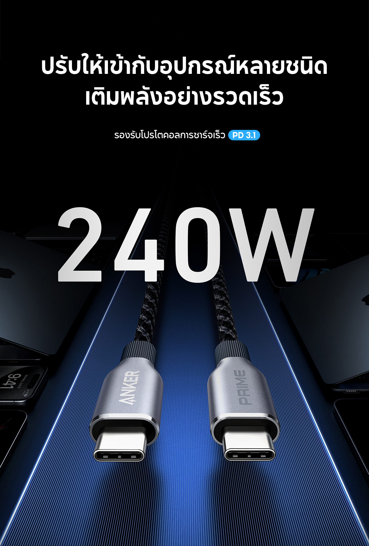 สัมผัสประสบการณ์การชาร์จ 240W ที่รวดเร็วเป็นพิเศษด้วยสายเคเบิลที่ยั่งยืนซึ่งทำจากไนลอนรีไซเคิลหลังการบริโภค ให้การถ่ายโอนข้อมูลที่รวดเร็วและความทนทานในอุณหภูมิที่รุนแรงตั้งแต่ -40°F ถึง 176°F