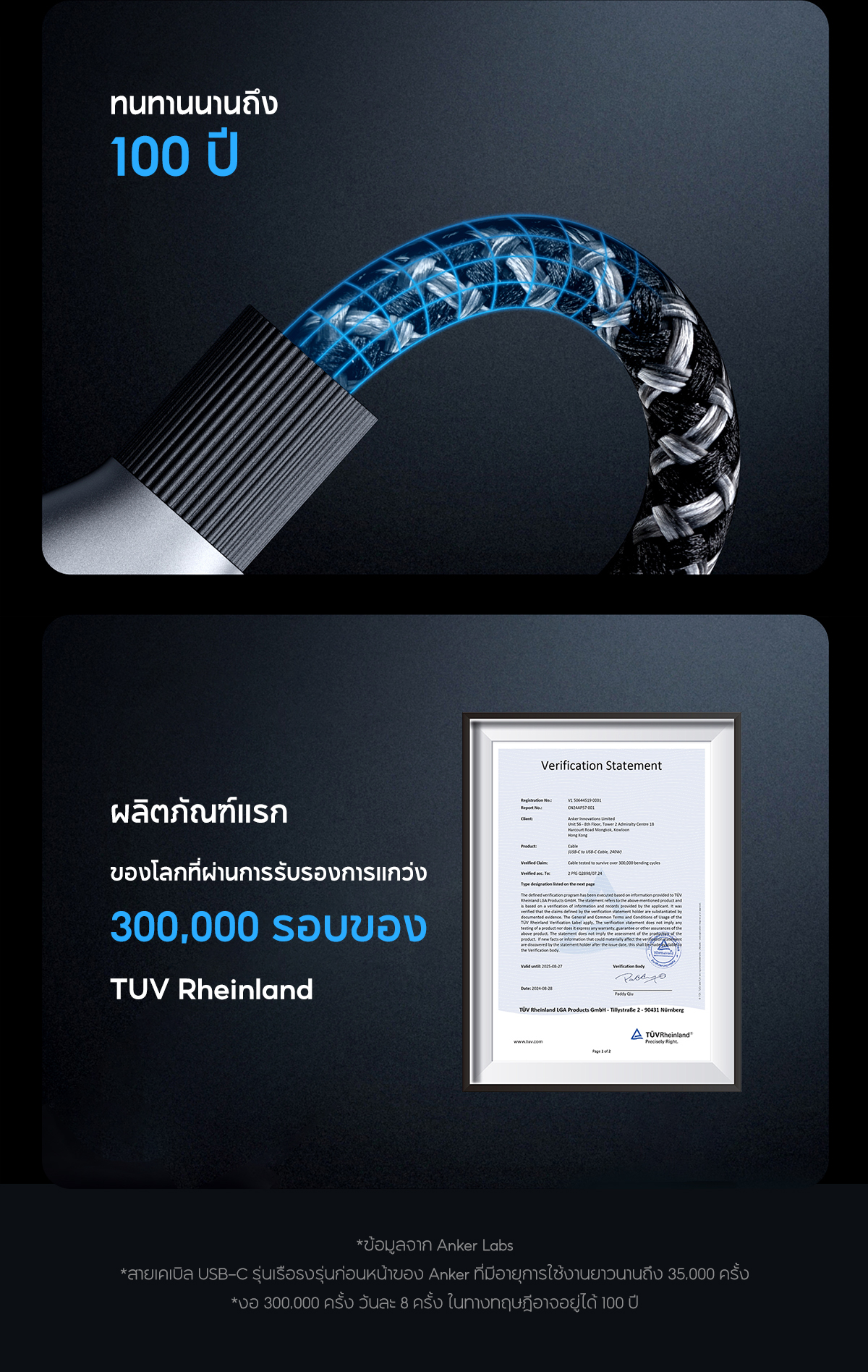 รับประกันประสิทธิภาพการใช้งานยาวนานหนึ่งศตวรรษด้วยสายเคเบิลที่ออกแบบมาเพื่อทนต่อการงอได้มากกว่า 300,000 ครั้ง ส่งเสริมการใช้งานที่เชื่อถือได้ยาวนาน