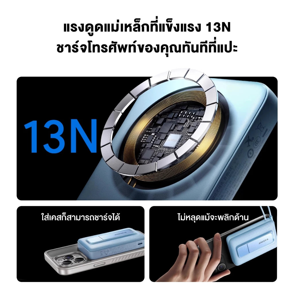 🔹ชื่อสินค้า: Anker Zolo Power Bank (10000mAh Magnetic Wireless Built-In USB-C Cable)
