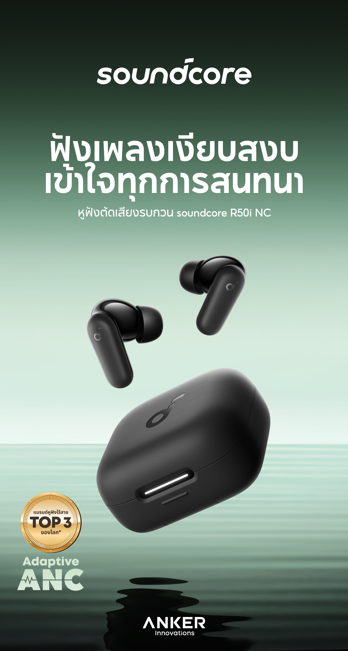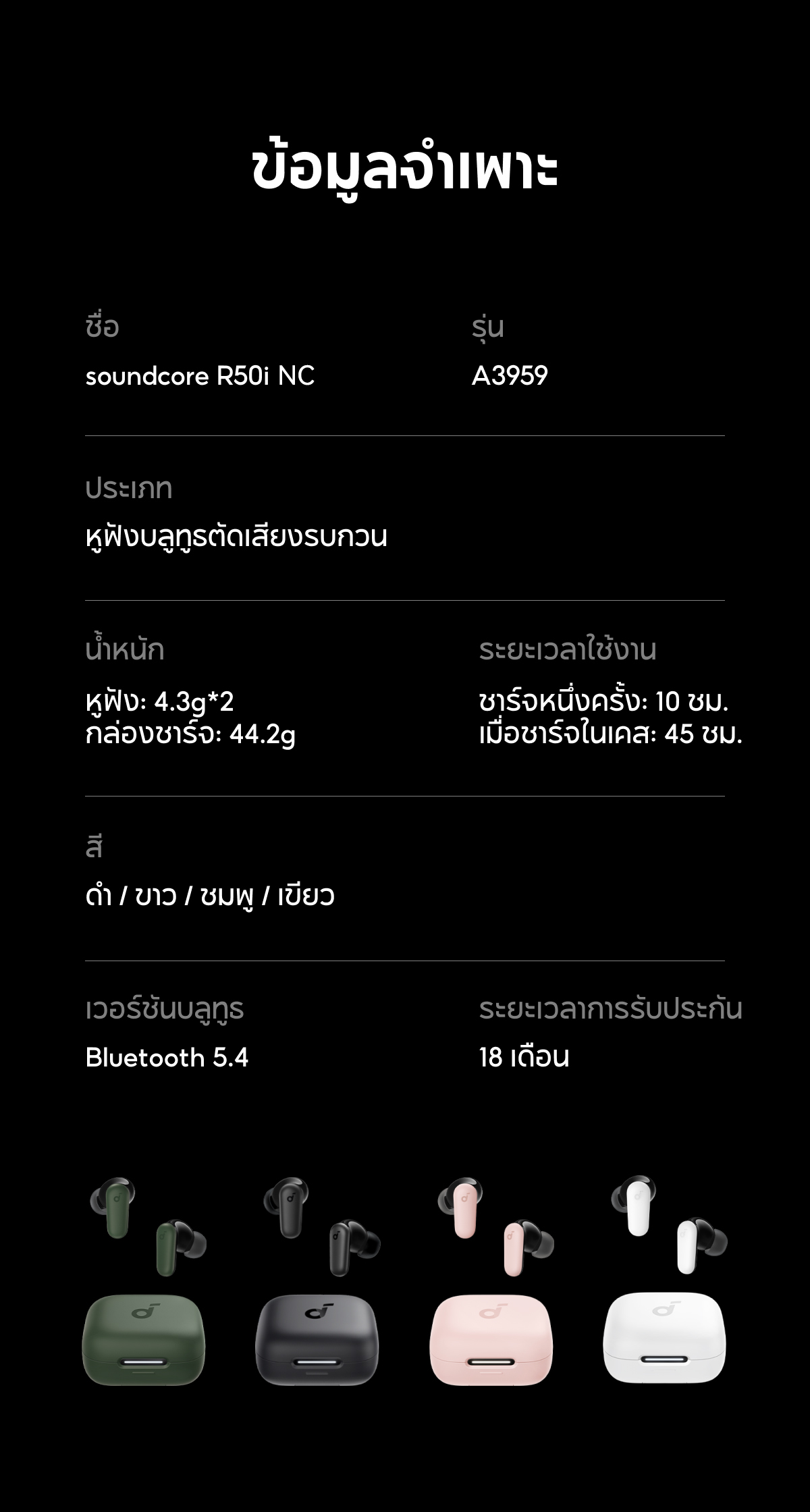 ✔️ Soundcore R50i NC หูฟังบลูทูธไร้สายตัดเสียงรบกวน ANC + 42dB ตัดเสียงรบกวนล้ำลึกสูงสุด 42dB ปรับลดระดับเสียงรบกวน ANC ตามสภาพแวดล้อมโดยรอบ