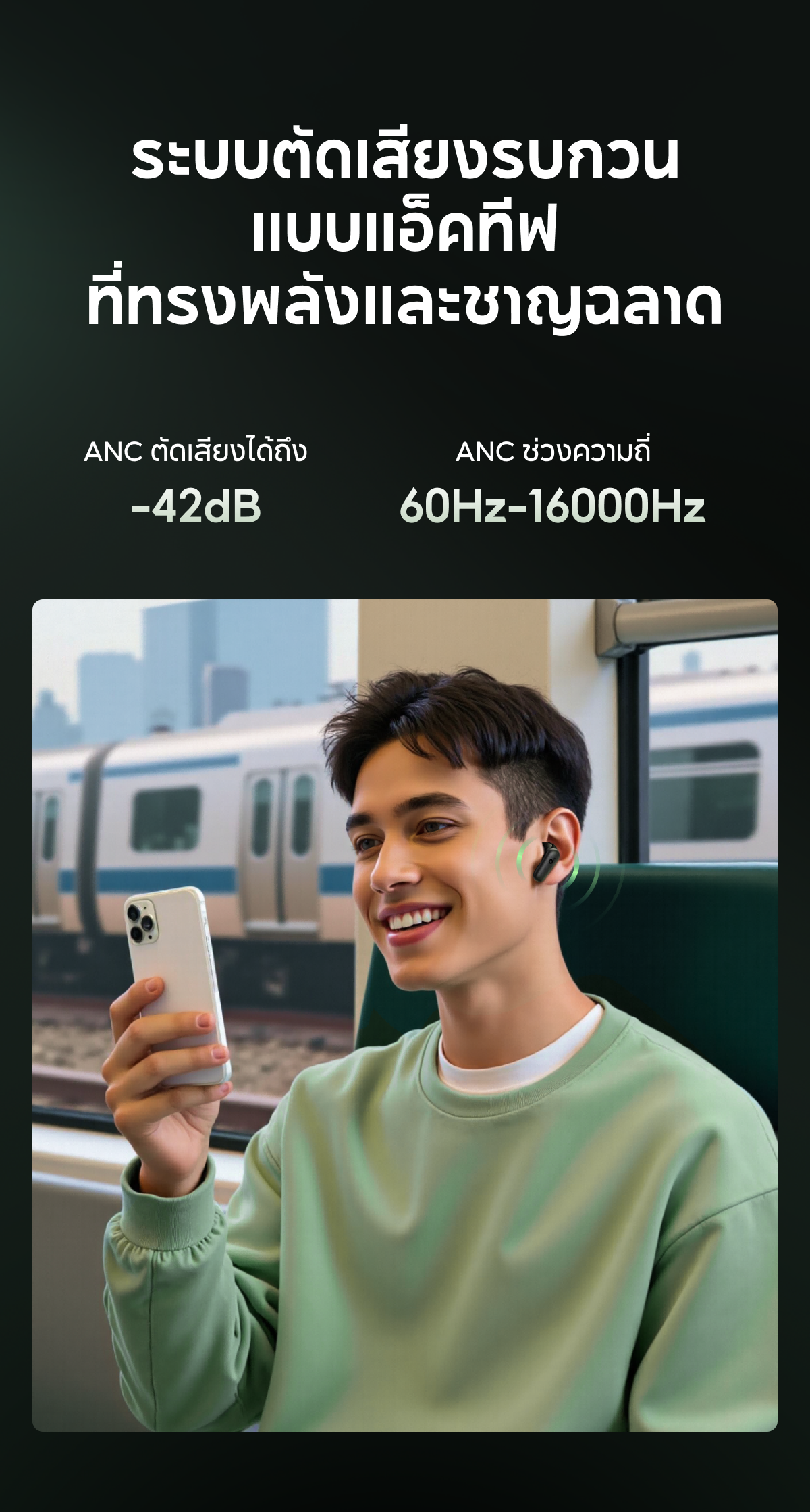 ✔️ ตัดเสียงรบกวน ANC หลากหลายรูปแบบ ปรับลดระดับเสียงรบกวนตามสภาพแวดล้อม สัมผัสประสบการณ์เสียงที่ดื่มด่ำสมจริง