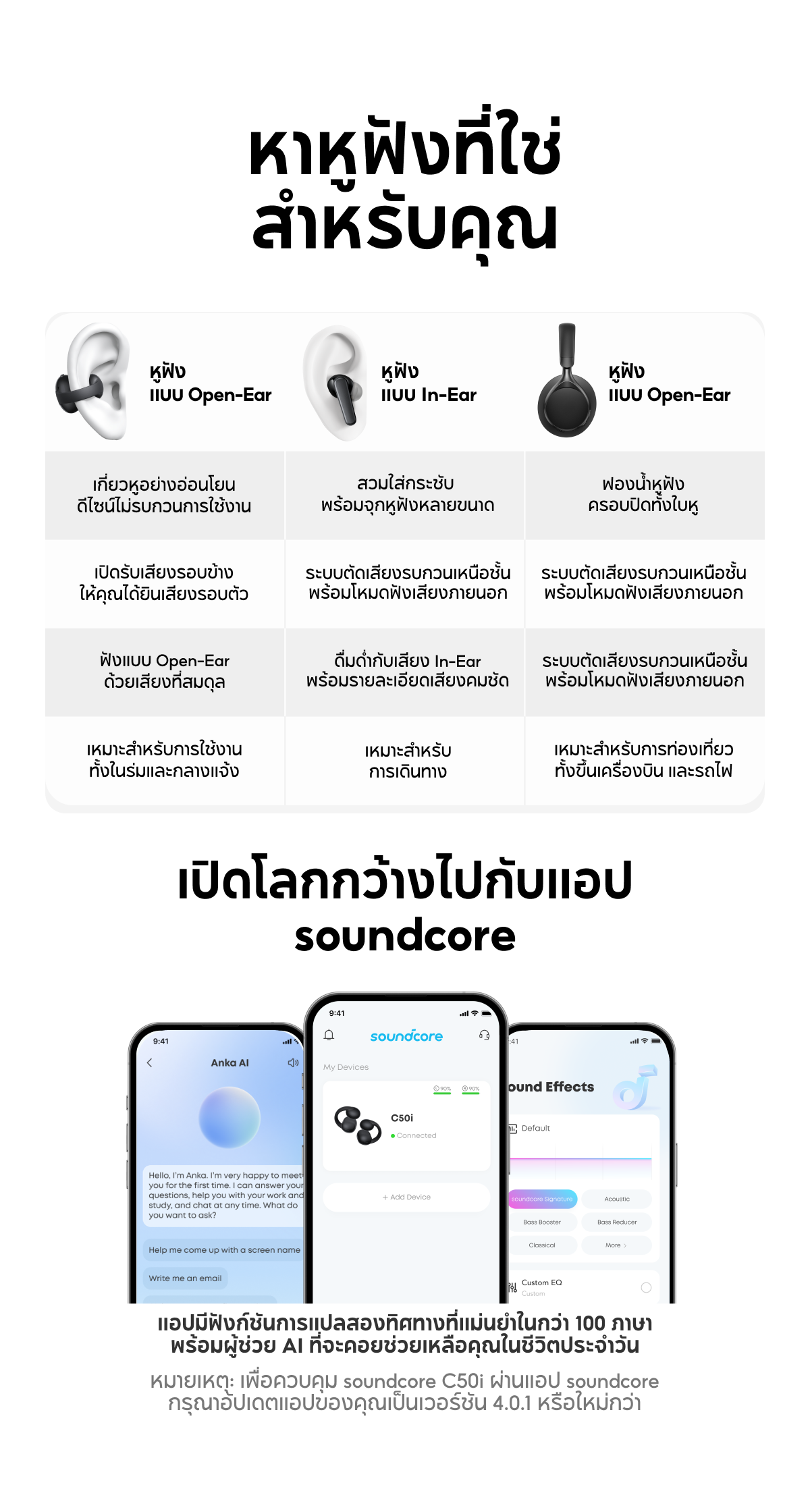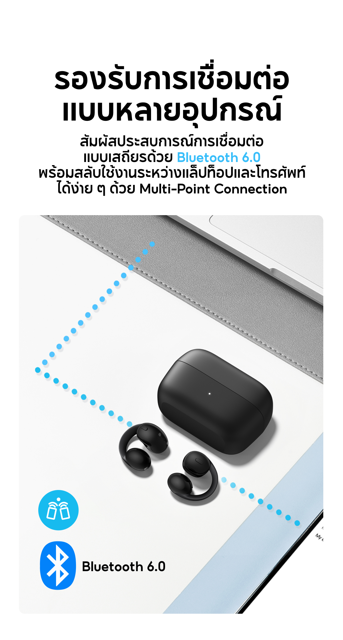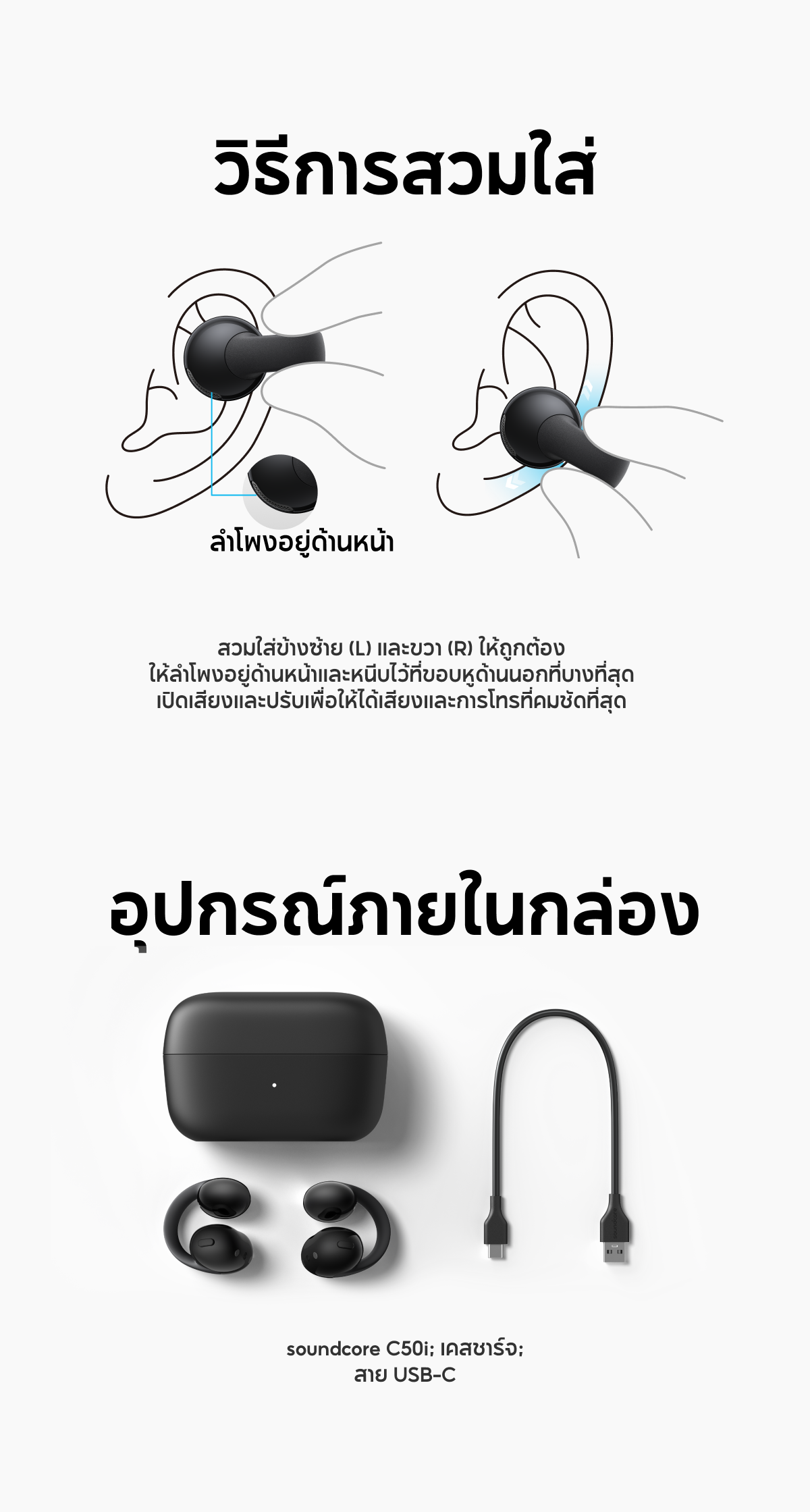 หูฟังบลูทูธไร้สาย Soundcore C50i Flexible and Comfortable Clip-On Earbuds
