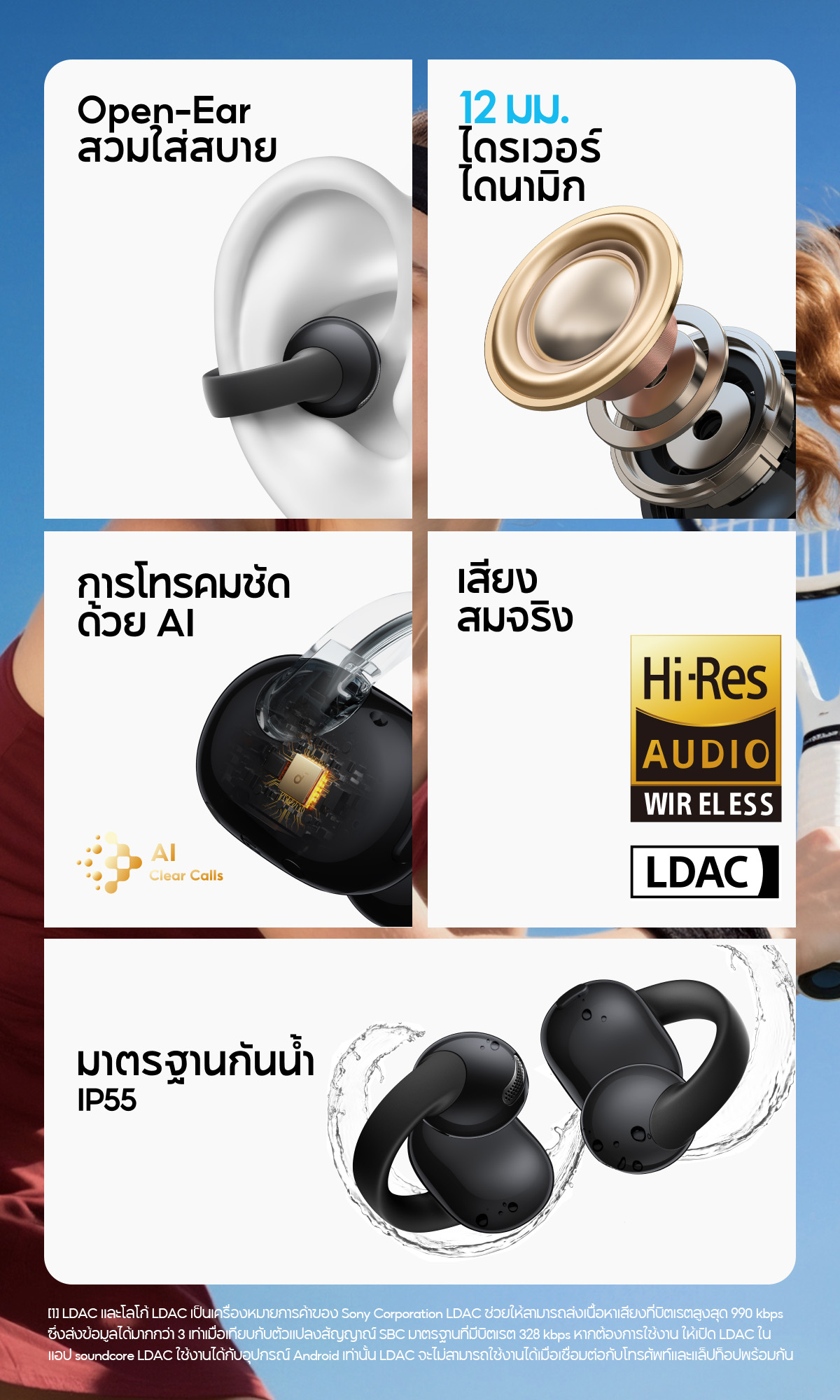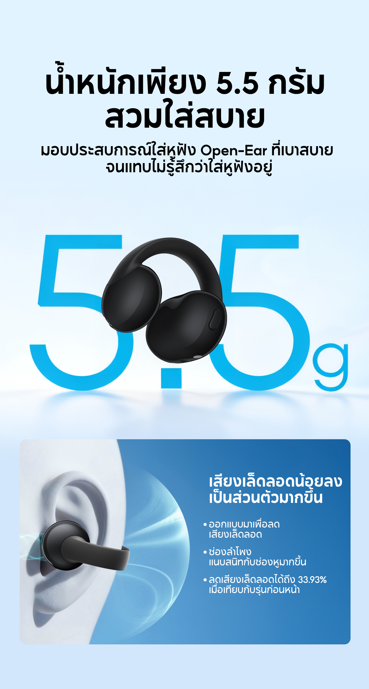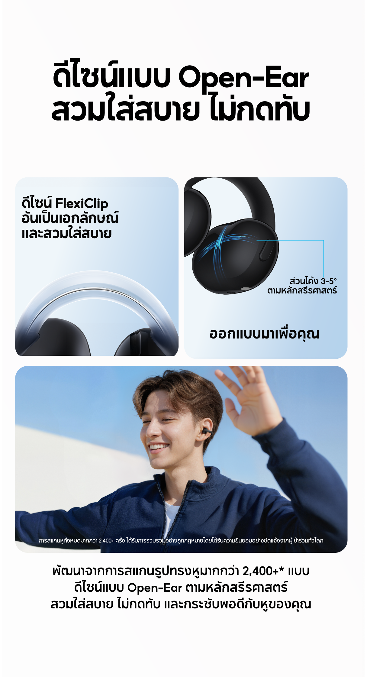 หูฟังบลูทูธไร้สาย Soundcore C50i Flexible and Comfortable Clip-On Earbuds