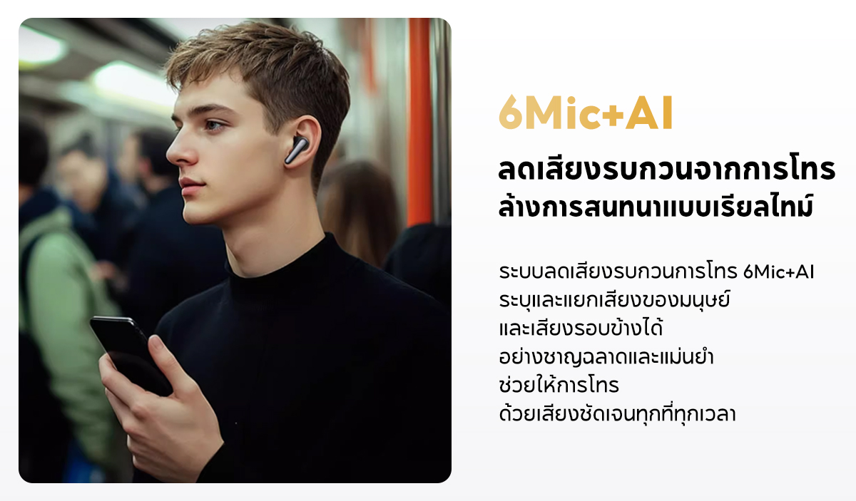 Matchless Noise Cancellation: 7 sensors detect noise from every angle. From planes to trains, enjoy a serene journey with 3× stronger noise reduction.