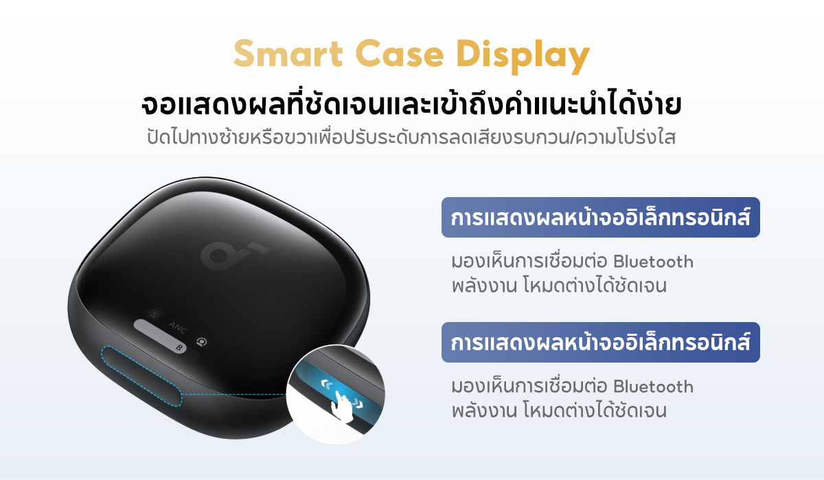 Effortless Controls: The case's touch bar and display let you fine-tune the noise-cancelling levels at any time with a simple swipe on the case.