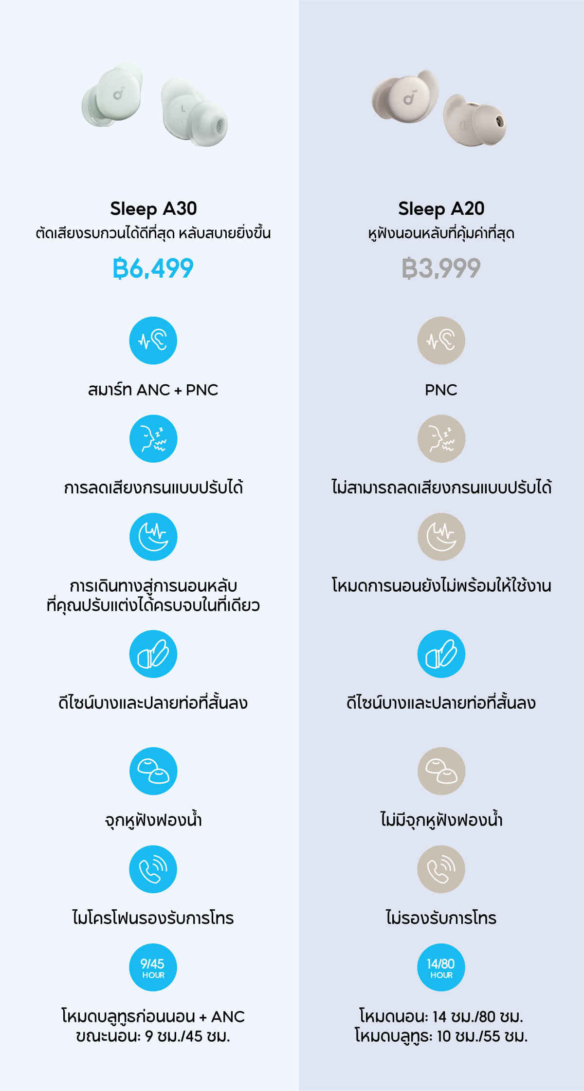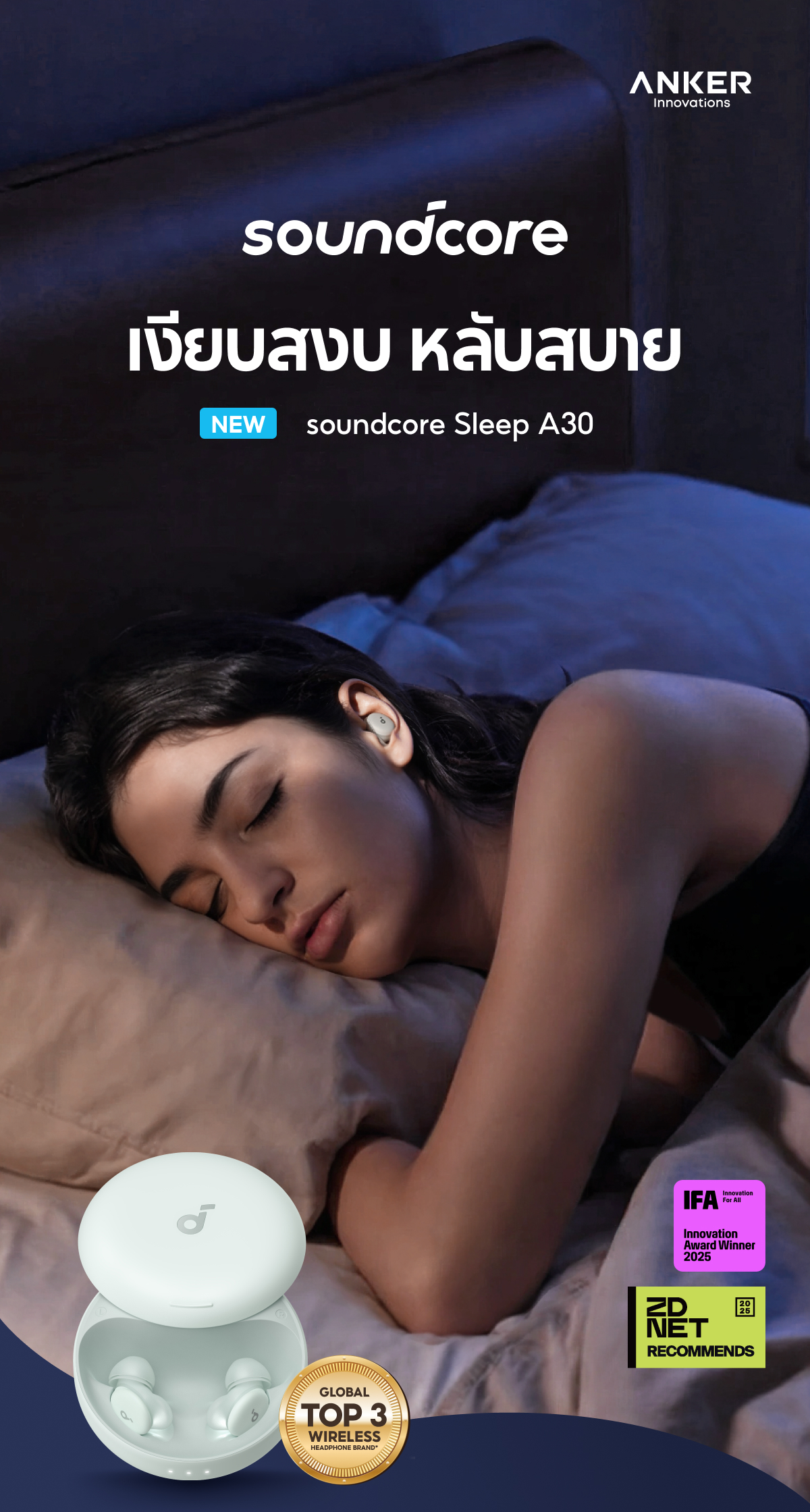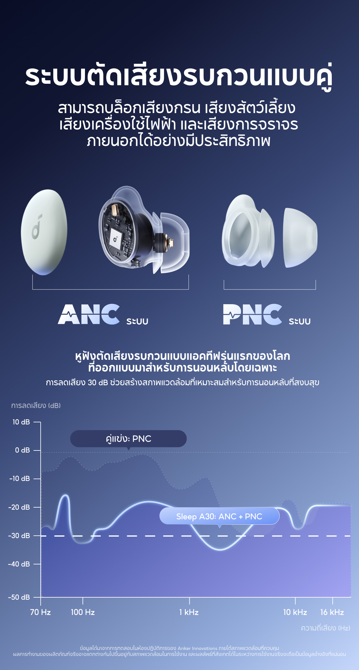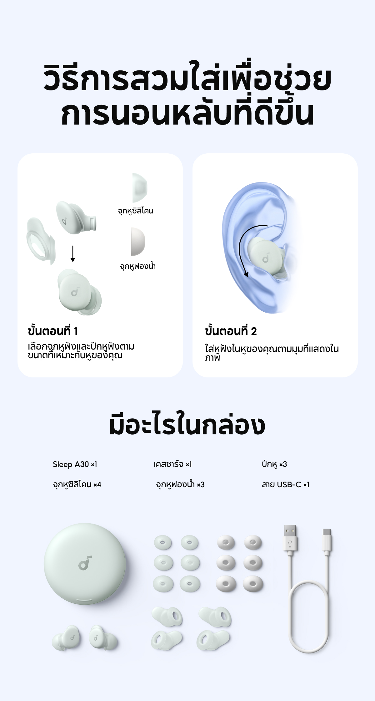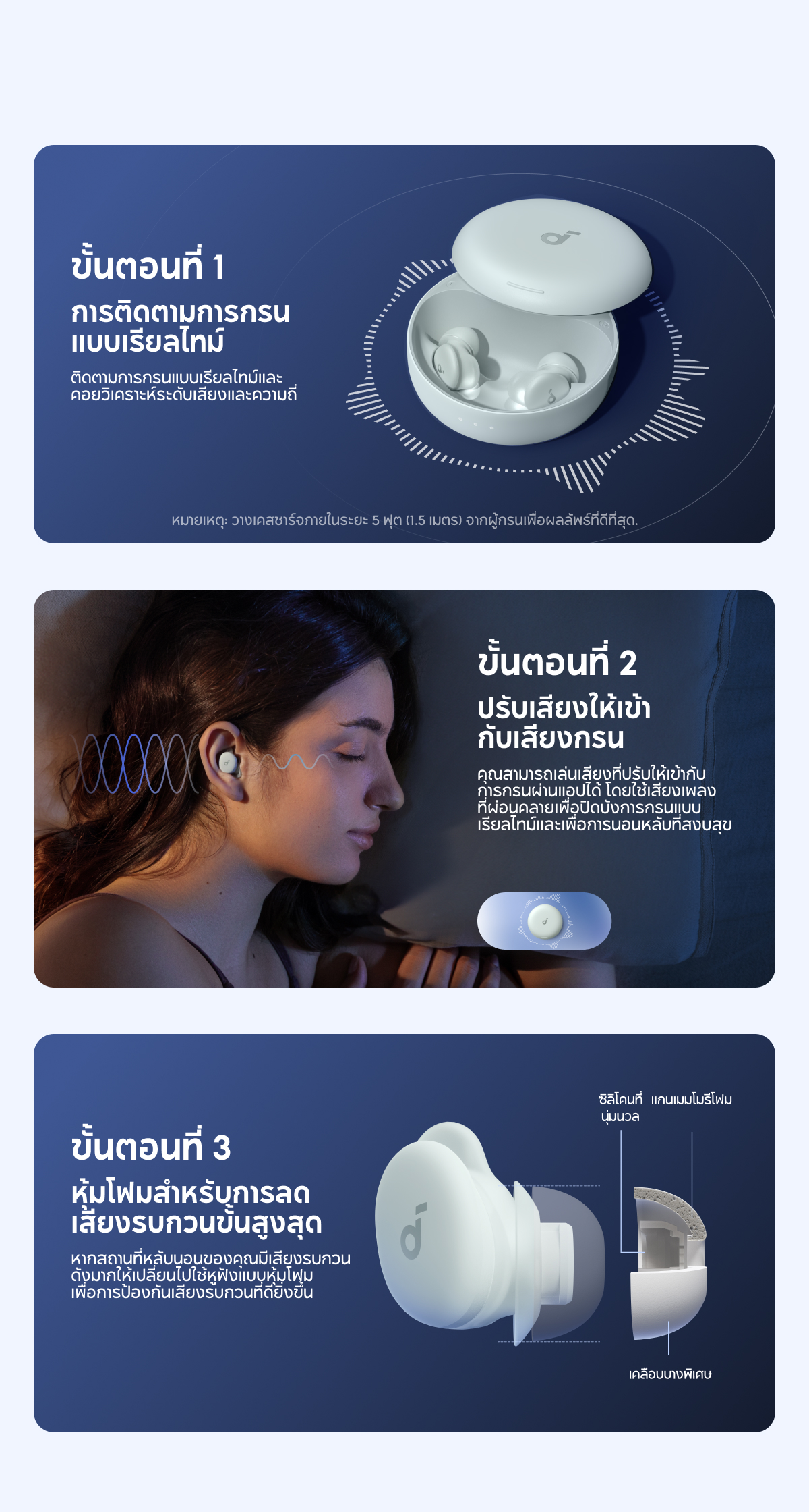 Soundcore Sleep A30 หูฟังบลูทูธ จุกหูฟังซิลิโคน หูฟังตัดเสียงรบกวนขณะนอนหลับ ทดสอบการนอน หูฟังไร้สาย